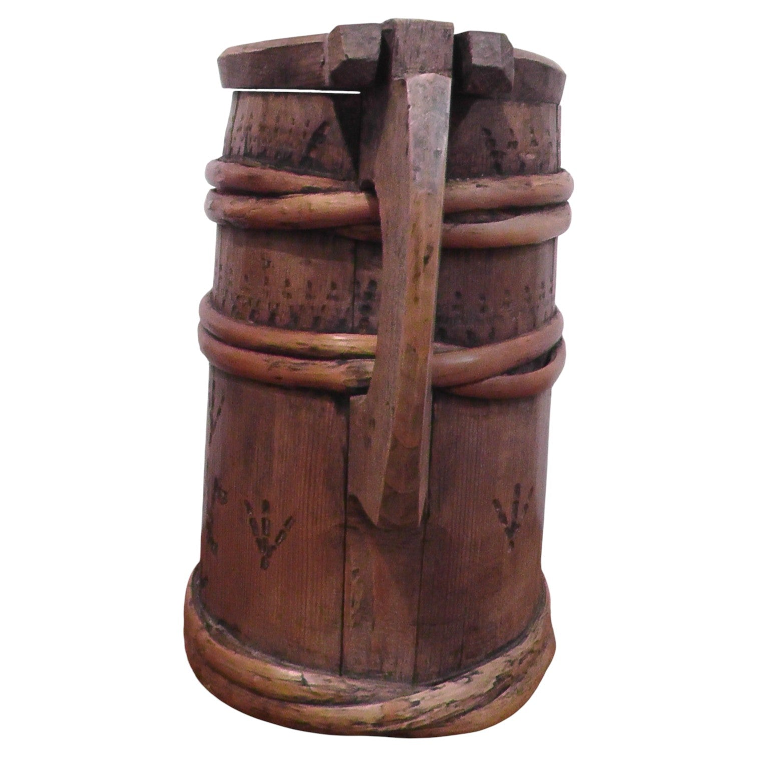 Antique Scandinavian Folk Art Lidded Staved Wooden Flour/Sugar Firkin/Storage Jug
