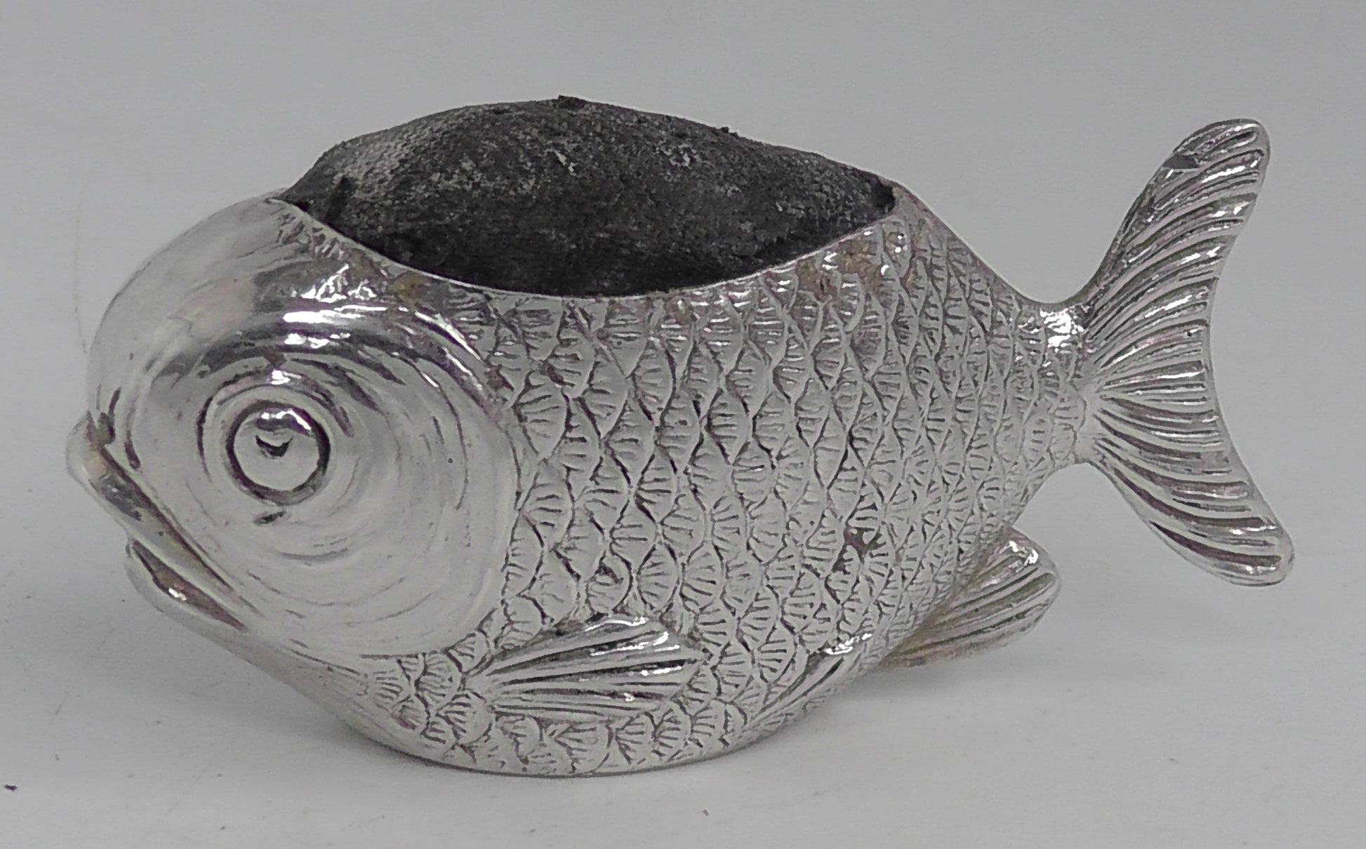 Antique Rare Solid Silver Fish Pin Cushion by Sampson Mordan dates Chester 1908